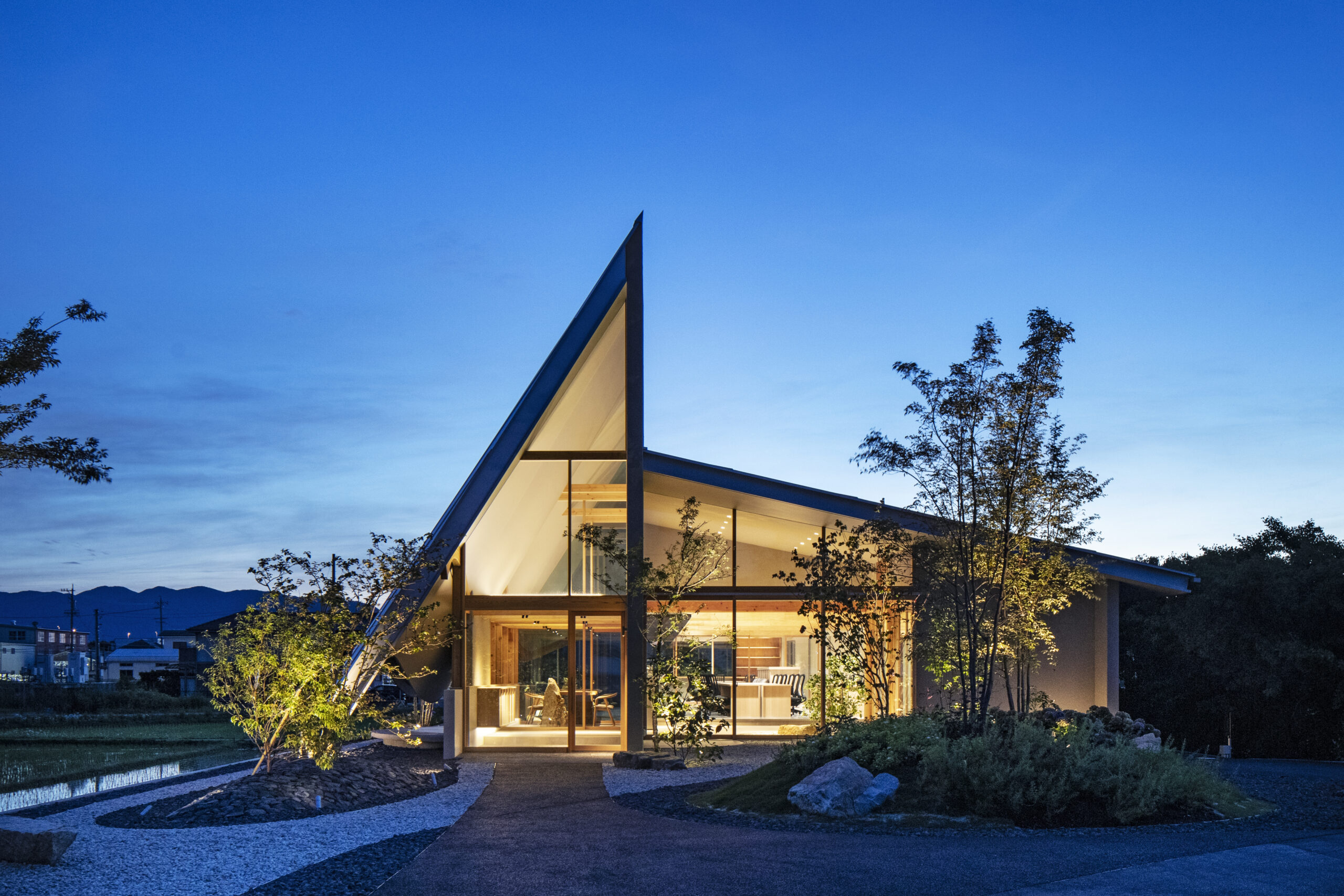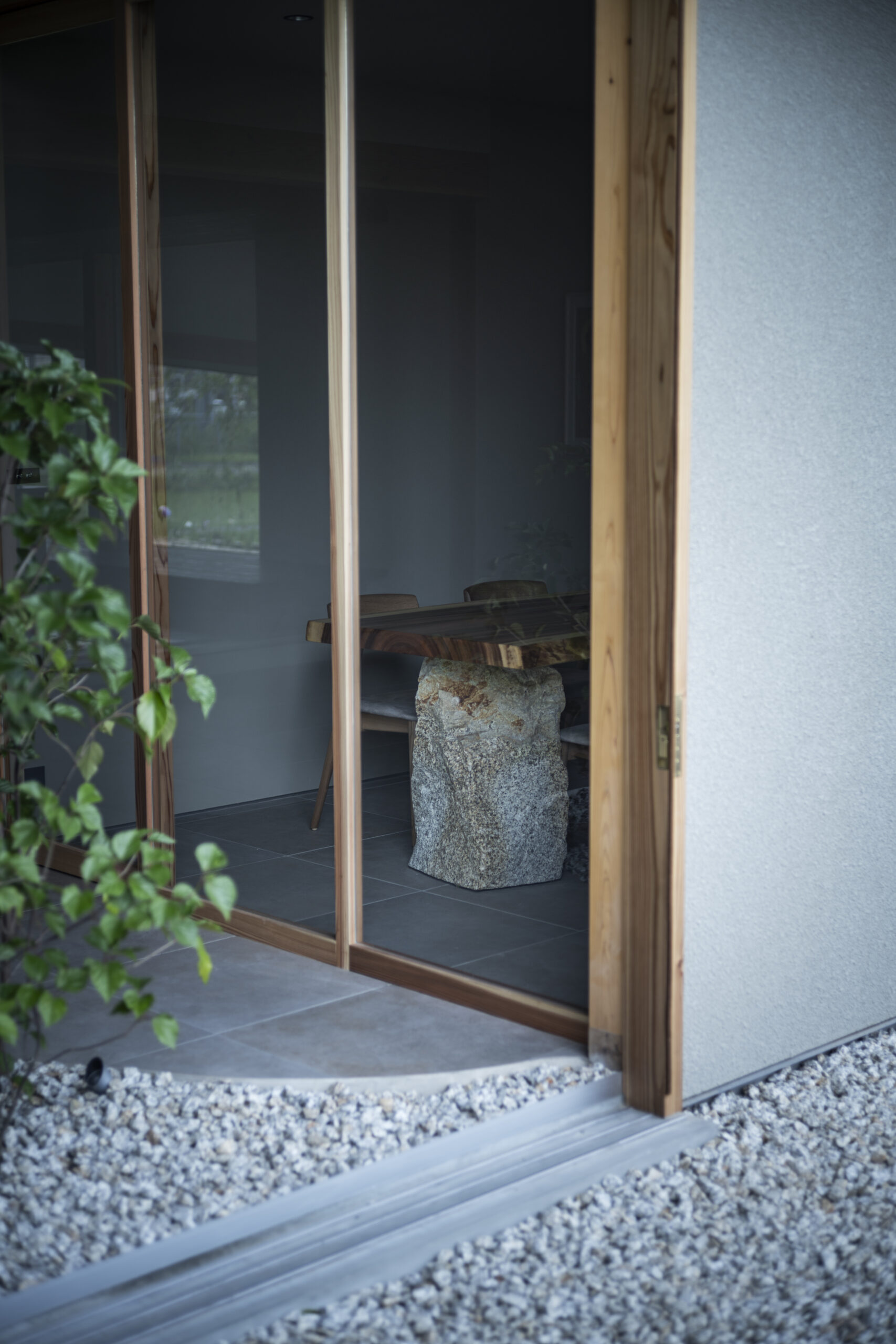 On the south side, large openings are combined with low eaves, balancing sunlight control with an intimate relationship to the garden. Wind, light, and other elements of nature are softly drawn into the space.